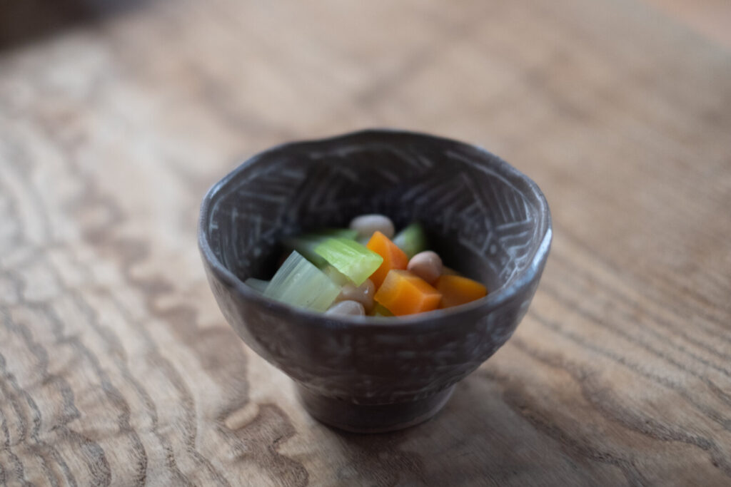 落花生の歯応えと香ばしさ、セロリの香り、にんじんの甘み。