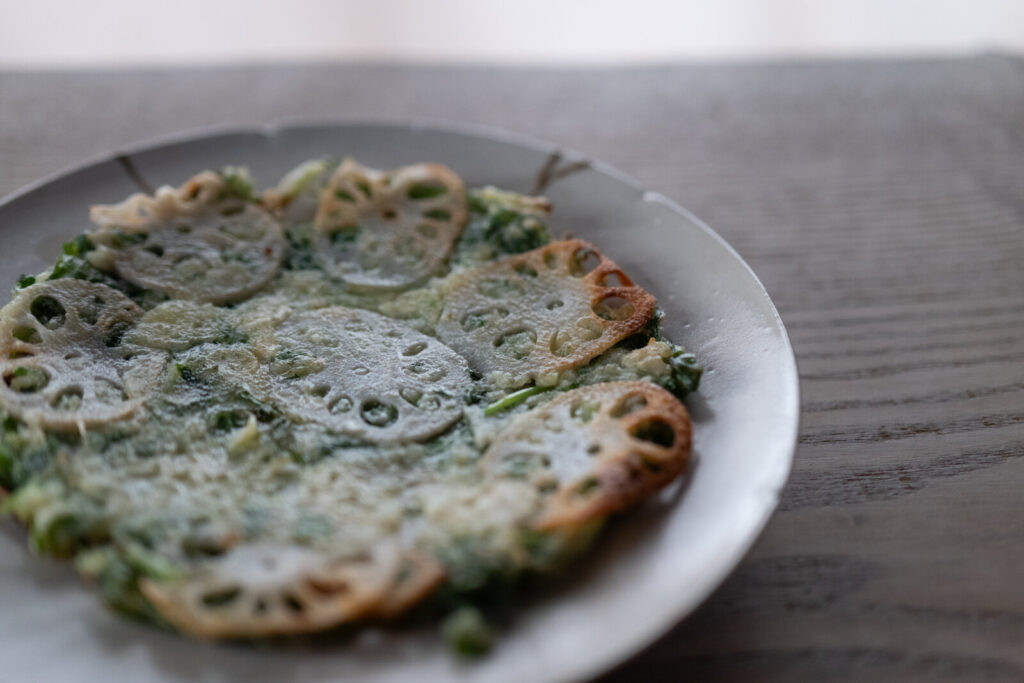 今まで数えきれないほどチヂミをお伝えしてきましたが、最近特に好きな組み合わせがこの春菊と蓮根のチヂミです。