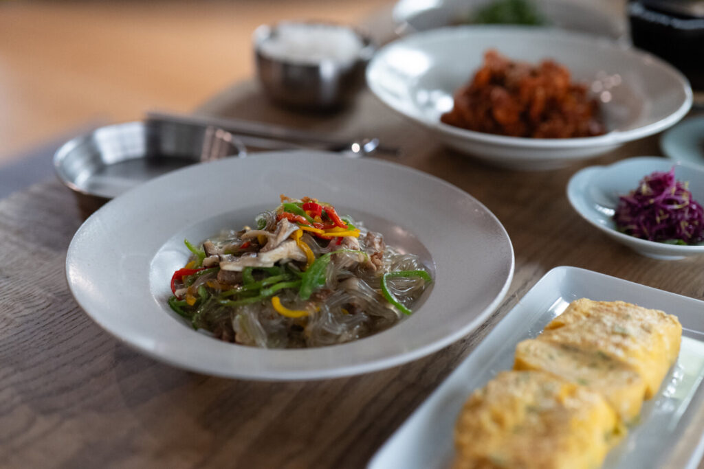 チャプチェ(잡채)は、春雨とたっぷりの野菜を炒め合わせた韓国の定番料理。