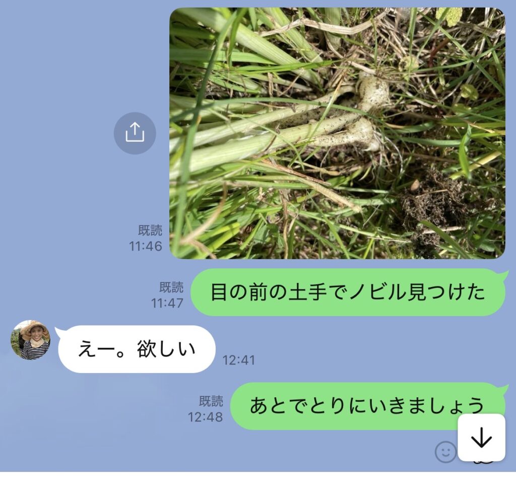 以前住んでいた家の近くにも、ノビルが生えている場所があって、それを自宅に持って帰ったことがあるのです。
